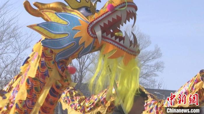 2月16日(大年初七)在新疆木垒县各乡镇社火排练现场,演员们伴随着欢快的鼓点,或走或跳,舞动着手中的彩扇、长龙,一招一式饱含了对美好生活的热爱。石倩 摄