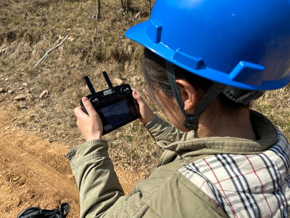 邵海雯操控无人机进行精细化巡检。新华社记者沈汝发 摄