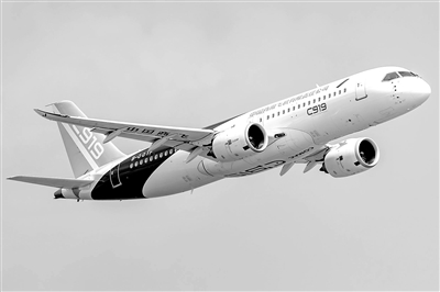 昨日,中国国产大型客机C919在新加坡航展开幕前进行预演飞行。