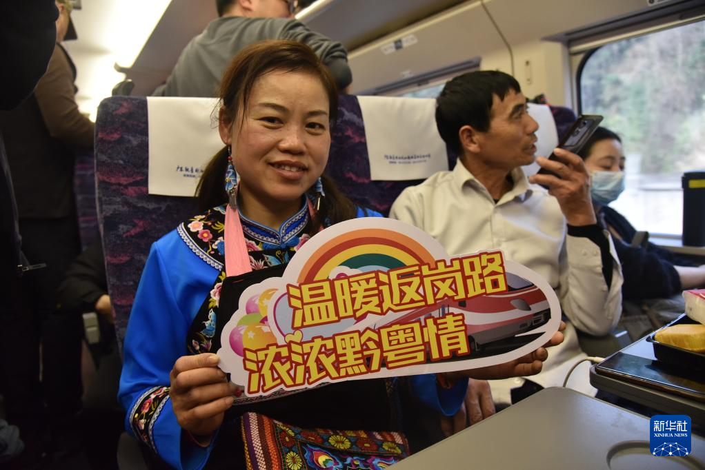 “这是我第一次乘坐免费的务工专列,方便快捷。”27岁的黔南州都匀市布依族人莫维欢说,得知她今年春节期间带着孩子回贵州老家过年,当地社区干部就帮她申请了去广州务工的免费车票。“以前带着孩子回家过年,经常只能买到站票,这次帮我省了不少烦心事。”