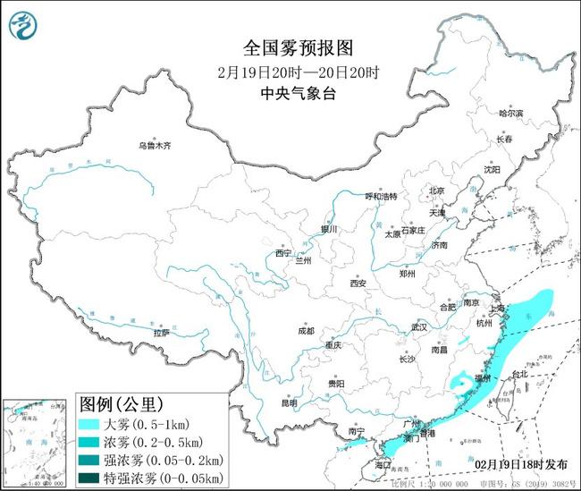 大雾黄色预警:预计,19日夜间至20日白天,东海西部海域、浙闽沿岸海域、台湾海峡、广东沿岸海域、广西沿岸海域将有大雾,20日早晨至上午,琼州海峡东段海域将有大雾,能见度不足1公里。此外,19日夜间至20日上午,福建中南部等地将有大雾天气,局地有能见度不足200米的强浓雾。