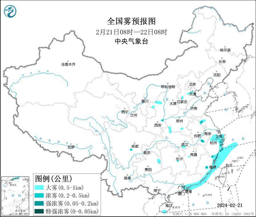 中央气象台2月21日6时继续发布大雾黄色预警:预计,21日白天至夜间,东海西南部海域、浙江南部沿岸海域、福建沿岸海域、广东中东部沿岸海域将有大雾,能见度不足1公里。此外,21日早晨至上午,浙江北部和东南部、福建东部等地有大雾天气,局地有能见度不足200米的强浓雾。