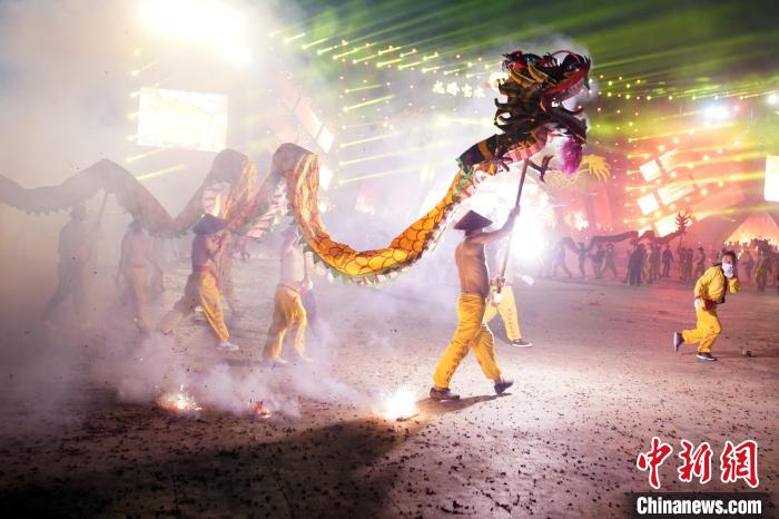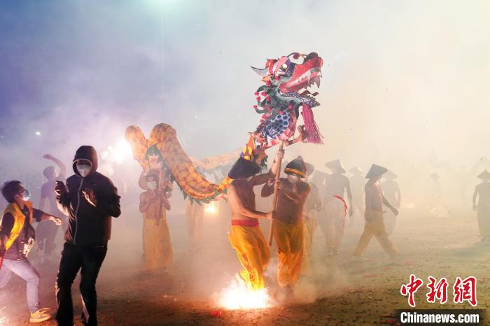 2月20日晚,在广西南宁市宾阳县,舞炮龙活动震撼上演。 陈冠言 摄