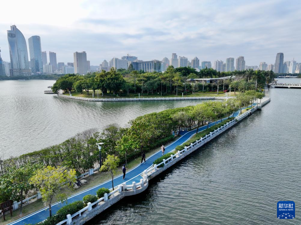这是1月24日拍摄的厦门筼筜湖休闲步道(无人机照片)。新华社记者 姜克红 摄