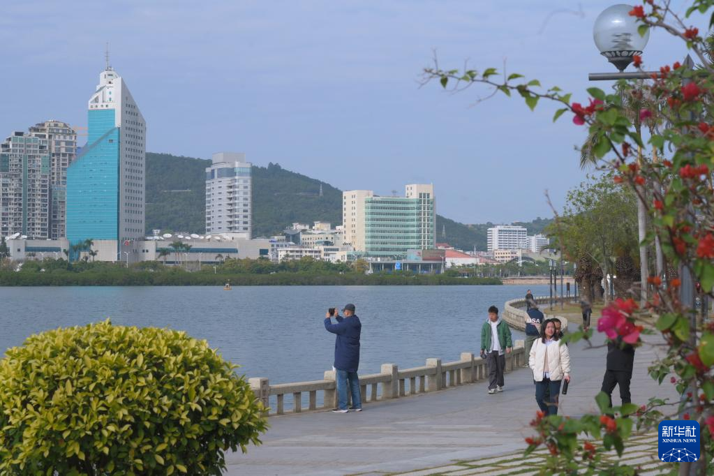 1月24日,市民在厦门筼筜湖畔休闲漫步。新华社记者 林善传 摄