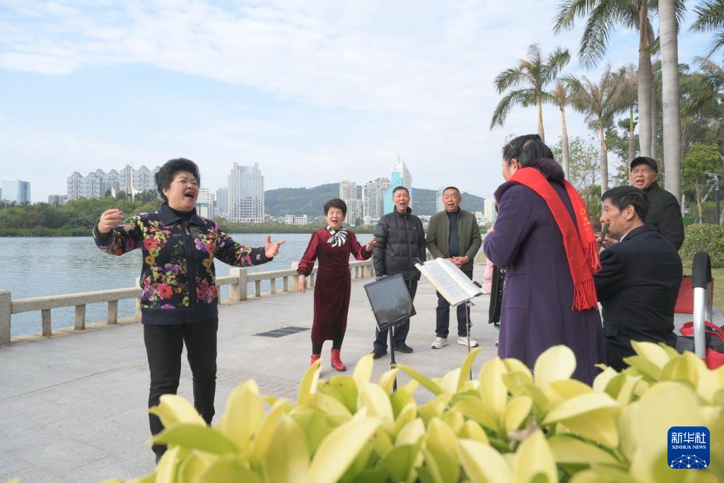 1月24日,市民在厦门筼筜湖边的南湖公园开展娱乐活动。新华社记者 林善传 摄