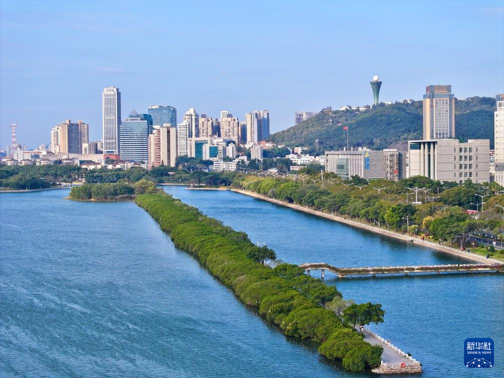 这是1月24日拍摄的厦门筼筜湖红树林种植带(无人机照片)。新华社记者 姜克红 摄