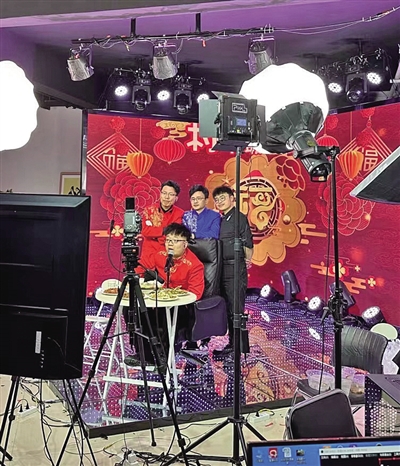 2月5日,赵峰等四人在进行“村节联欢晚会”的直播。新京报记者 李冰洁 摄