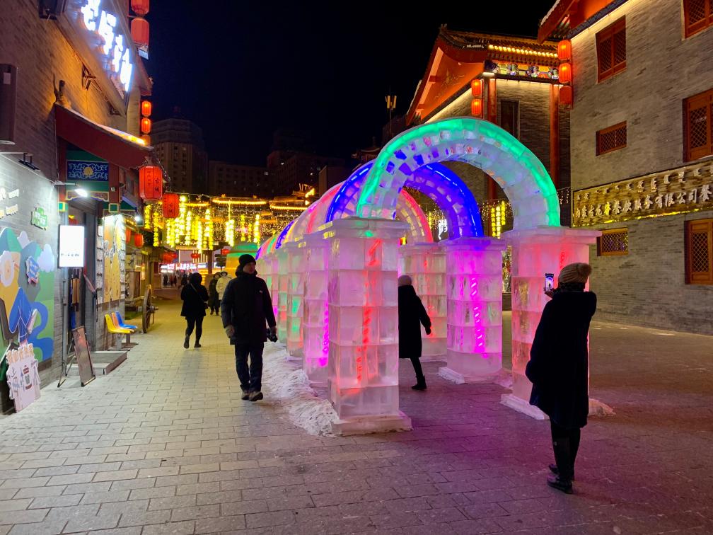 呼伦贝尔古城国家级旅游休闲街区以“冰雪+夜游”模式将冰雪元素与夜间经济有机衔接,街区内33座冰雕、冰建景观让这里的夜不再单调,区内店铺也延长了营业时间,街区仅2月14日至2月20日就接待游客15.5万人次。