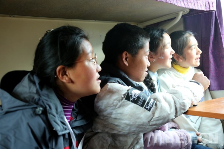 还有一到饭点就来询问孩子们怎么吃饭的列车员、和孩子们一起跳锅庄的游客、主动分享零食的小妹妹……同学们在火车上的经历,让带队老师次仁罗布不禁感叹,孩子们第一次出远门,还没到目的地就已经深切地感受到中华民族一家亲的浓厚氛围,真是非常幸运。