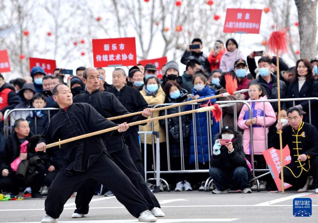2月24日,选手在河北省石家庄市鹿泉区“金龙闹元宵”武林大会上表演传统武术。新华社记者 王晓 摄