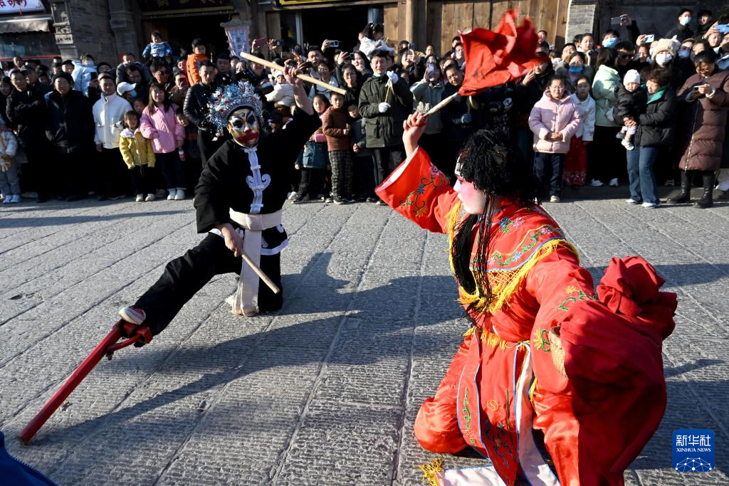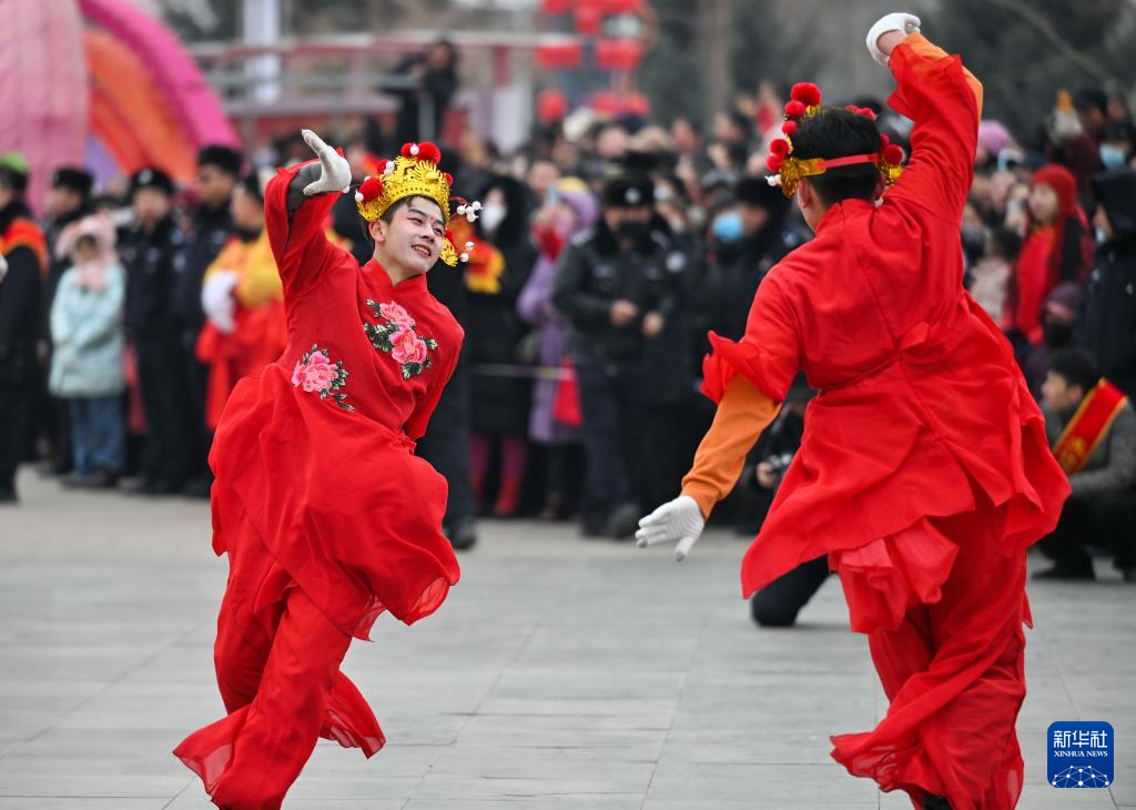 2月24日,演员在内蒙古自治区乌兰察布市凉城县岱哈广场跳秧歌。新华社记者 刘磊 摄