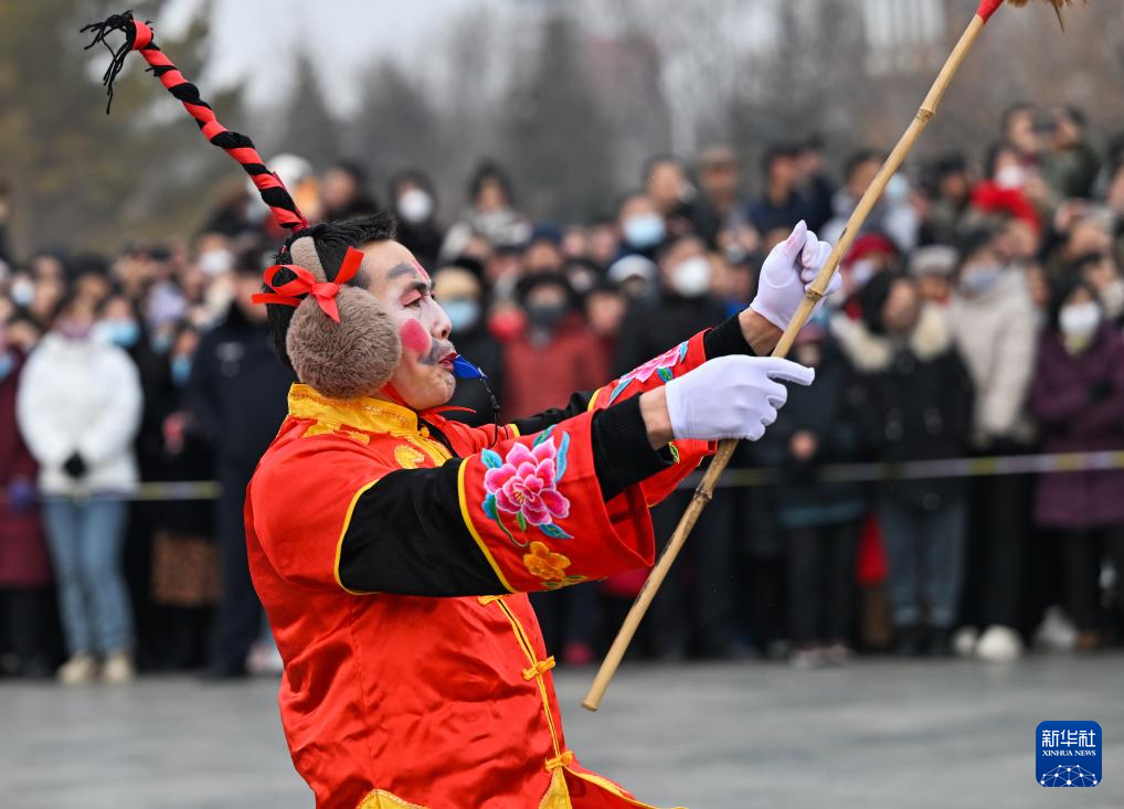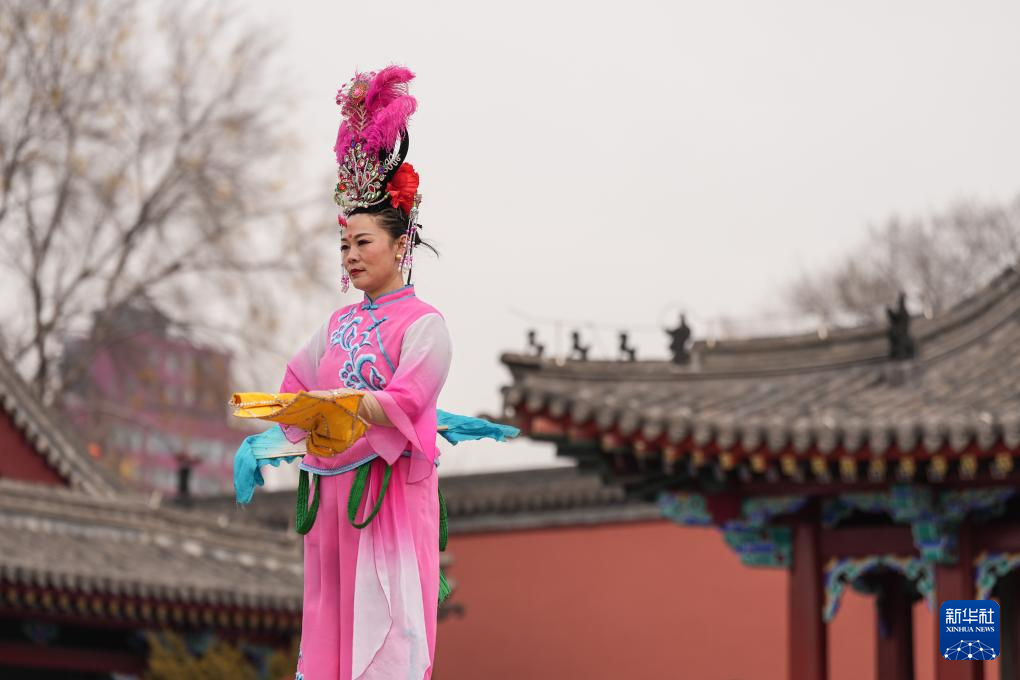 2月24日,演员在沈阳故宫博物院表演辽宁海城高跷。新华社记者 潘昱龙 摄
