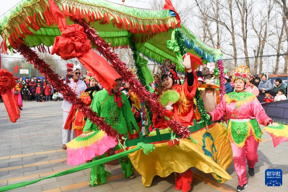 2月24日,在北京市通州区张家湾镇前街村,群众在观看传统民俗“小车会”表演。新华社记者 鞠焕宗 摄