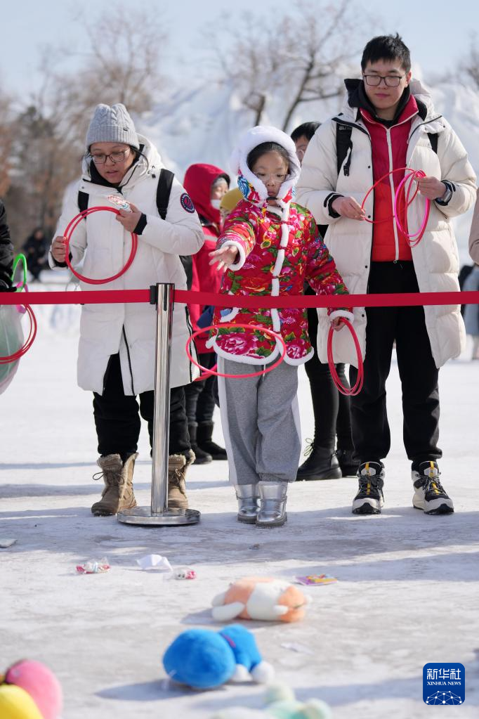 2月24日,游客在哈尔滨太阳岛雪博会园区内玩套圈。新华社记者 王建威 摄