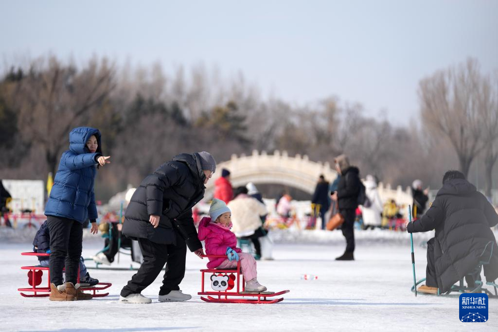 2月24日,游客在哈尔滨太阳岛雪博会园区内体验冰雪娱乐项目。新华社记者 王建威 摄