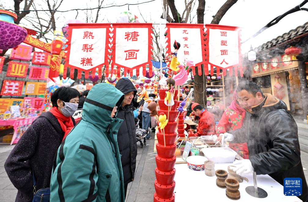 2月24日,游客在天津市西青区杨柳青古镇购买特色小吃。新华社记者 李然 摄