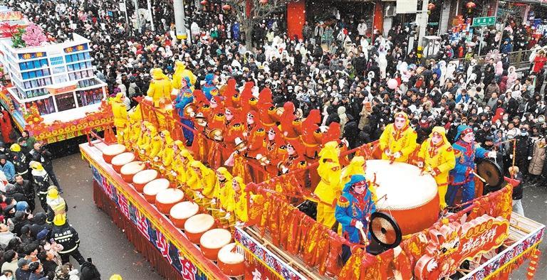 2月23日,“福满团圆 喜乐元宵”游园会在江苏连云港市连云区宿城街道桃源文化广场举行,现场表演热闹非凡。王健民摄 (中经视觉)