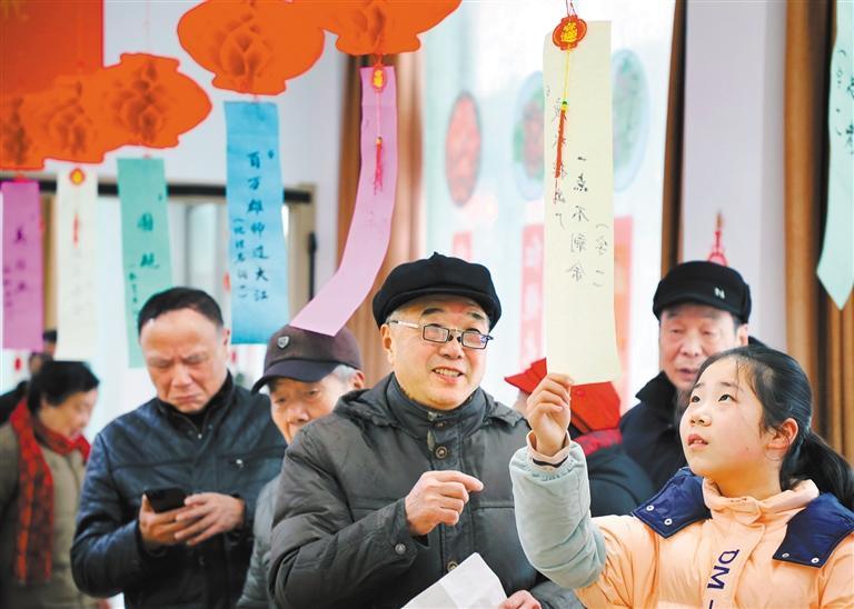 2月21日,安徽六安市金安区东市街道军民社区,居民在一起猜灯谜,庆元宵。田凯平摄 (中经视觉)