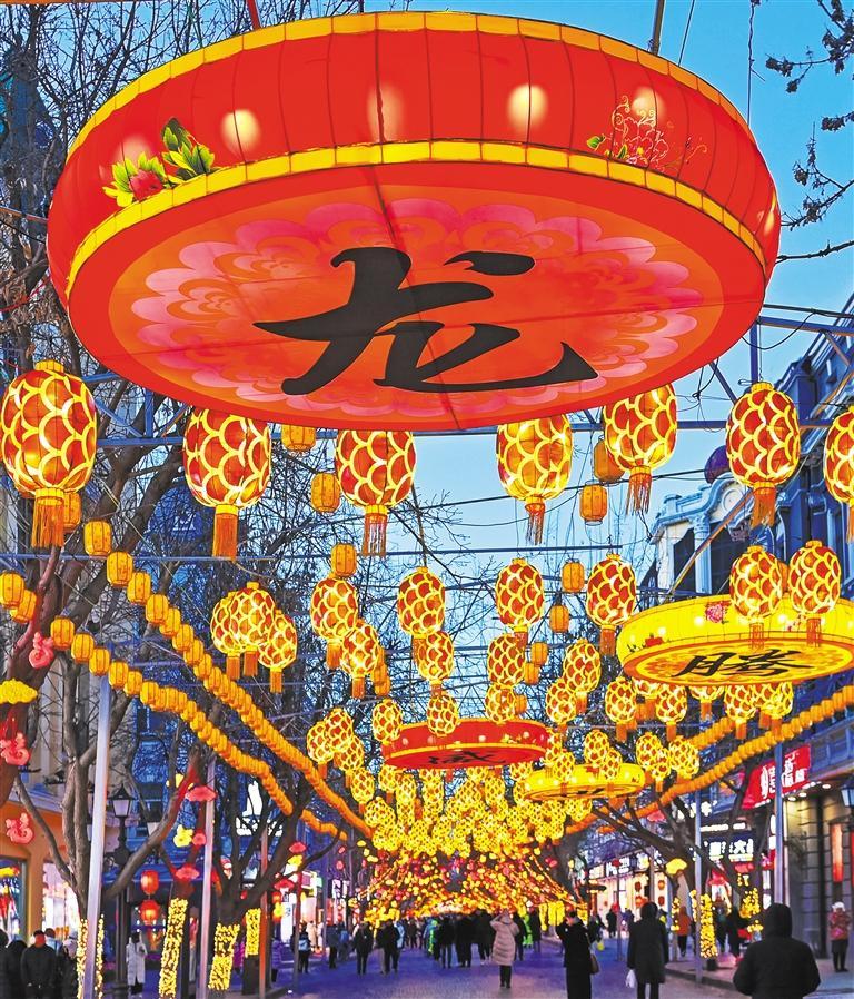 2月21日,黑龙江哈尔滨市中央大街花灯璀璨夺目,处处洋溢着喜庆祥和的节日气氛。原 勇摄(中经视觉)