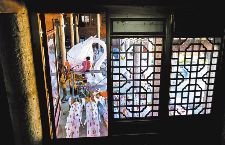 2月20日,浙江缙云县五云街道东门村村民在制作板龙,欢欢喜喜闹元宵。蒋平摄(中经视觉)