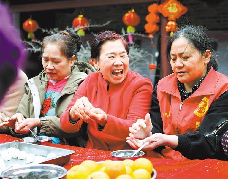 2月21日,广西灵川县定江镇路西村开展庆元宵活动,村民在一起做花灯、包汤圆,感受传统节日的乐趣。 阳海翔摄 (中经视觉)