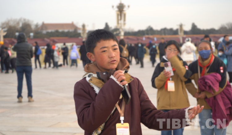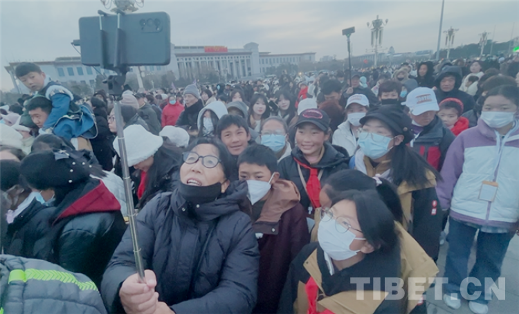 中国西藏网讯 “我们来自西藏,我在天安门广场看升旗,特别激动,特别开心,特别感动!”来自西藏自治区日喀则市边境县学生赴北京参观研学的22名学生激动地挤进老师的手机镜头高声喊着。