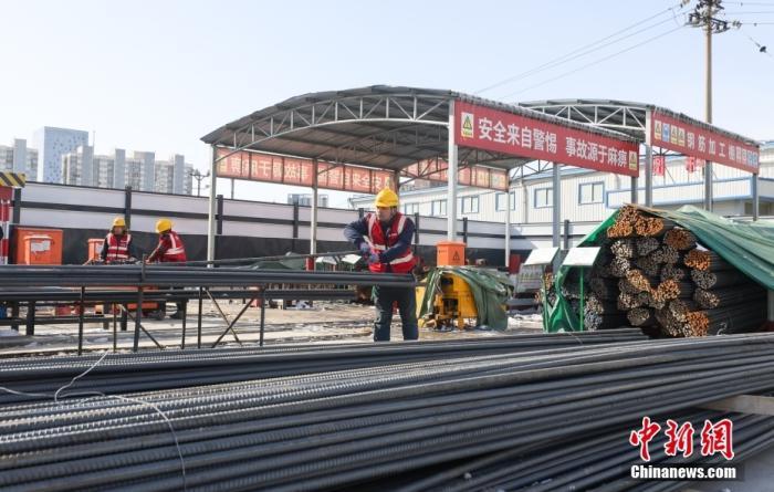资料图:北京地铁平谷线永顺站施工现场,工人加工钢筋。中新社记者 贾天勇 摄