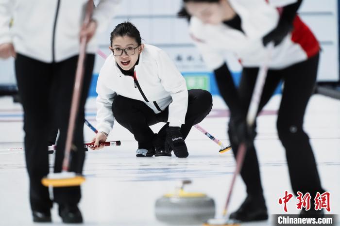 2月23日,第十四届全国冬季运动会冰壶公开组女子循环赛第4轮比赛在内蒙古呼伦贝尔进行。由王冰玉领衔的四川队以5比4的比分战胜云南队。图为王冰玉在比赛中提示队友。中新社记者 崔楠 摄