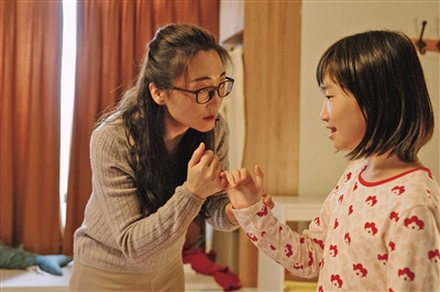 1月31日,广州番禺,畅雨完成一场戏的拍摄后,母女俩在一旁互动。畅雨每完成一件事,张雪都会给她一个赞。畅雨如果答应张雪的要求,两人就会拉钩,这些都是母女间的默契。
