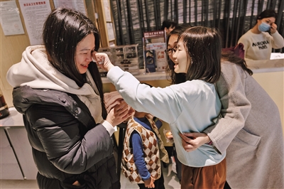 1月30日,广州番禺,病友妈妈赖艳茹看到懂事的畅雨感慨地哭了起来,畅雨赶忙帮她擦去眼泪。