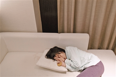 1月30日晚,广州番禺,准备睡觉的畅雨躺在沙发上。自主入睡对她来说几乎不可能,整晚睡觉是一种奢望。