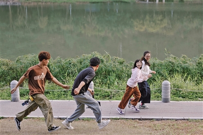 1月31日,广州番禺,外景拍摄现场,畅雨和妈妈在拍摄一个奔跑的镜头。