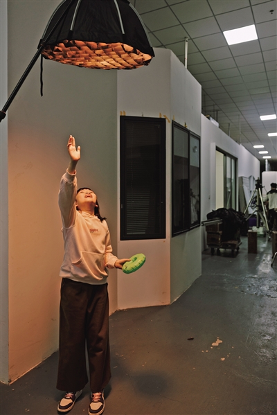1月31日晚,广州番禺,完成一天的拍摄后,工作人员准备收工,大家都很疲惫,只有畅雨还是“精力满满”,对灯光设备产生好奇。