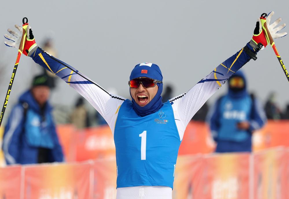 2月24日,重庆队选手王强在比赛后庆祝。新华社记者 张晨霖 摄