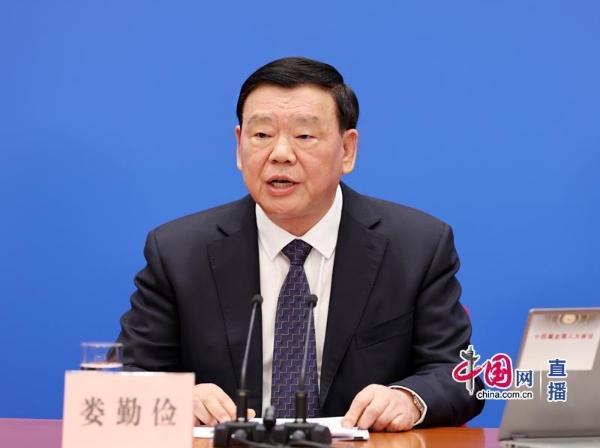 3月4日,十四届全国人大二次会议举行新闻发布会,十四届全国人大二次会议新闻发言人娄勤俭就大会议程和人大工作相关问题回答中外记者提问。中国网 董宁 摄