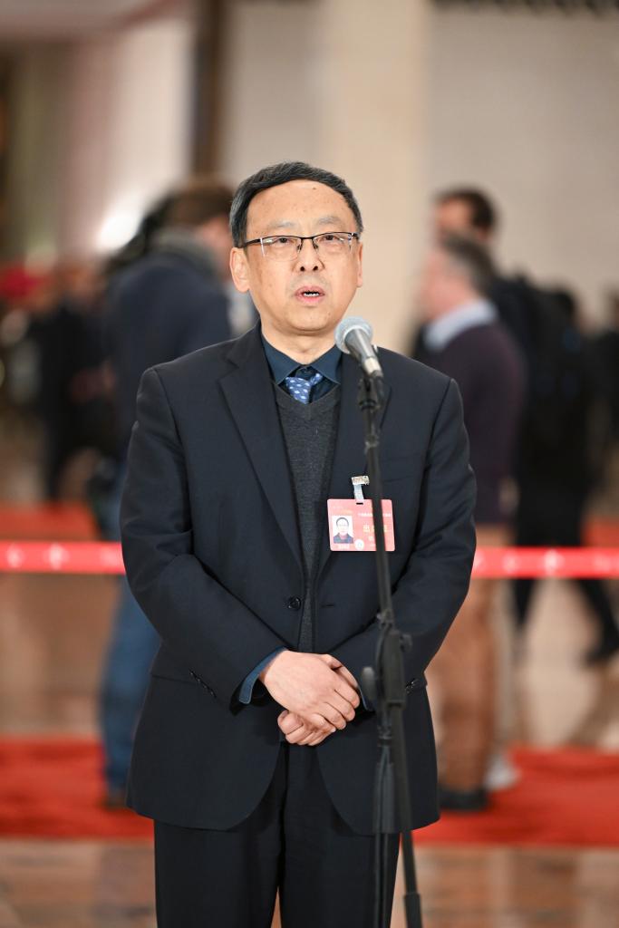 3月5日,第十四届全国人民代表大会第二次会议首场“代表通道”集中采访活动在北京人民大会堂举行。这是全国人大代表杭侃接受媒体采访。