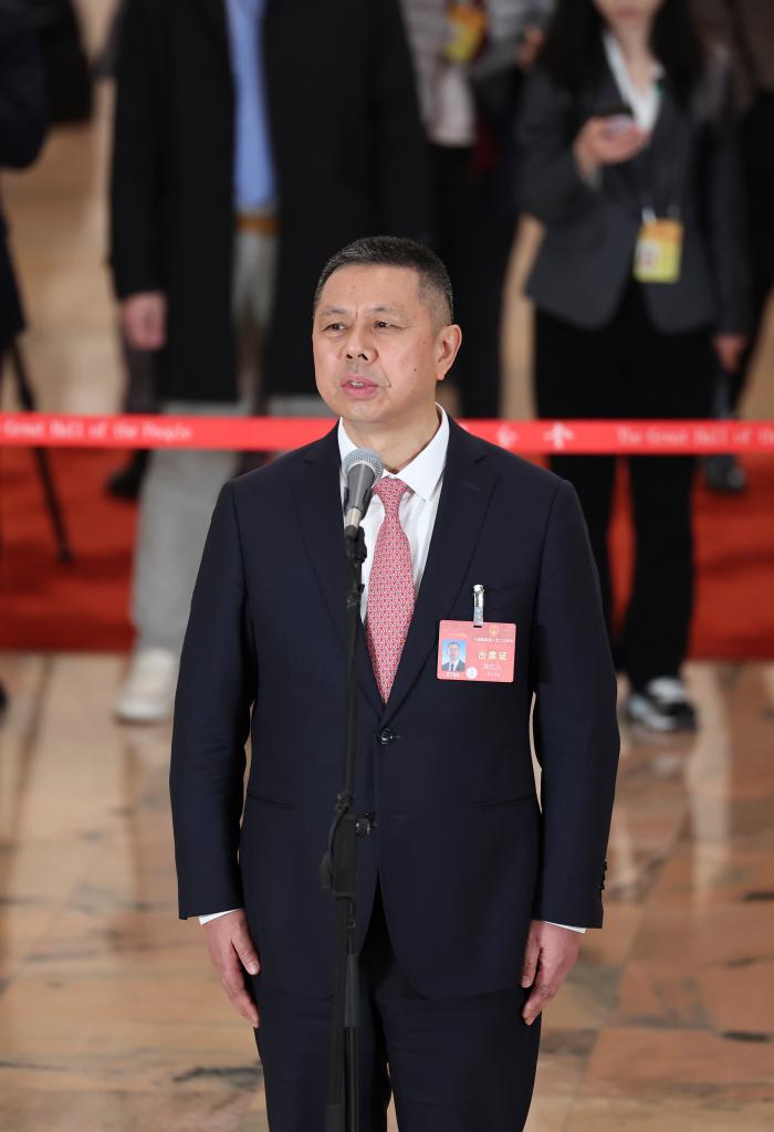 3月5日,第十四届全国人民代表大会第二次会议首场“代表通道”集中采访活动在北京人民大会堂举行。这是全国人大代表高纪凡接受媒体采访。