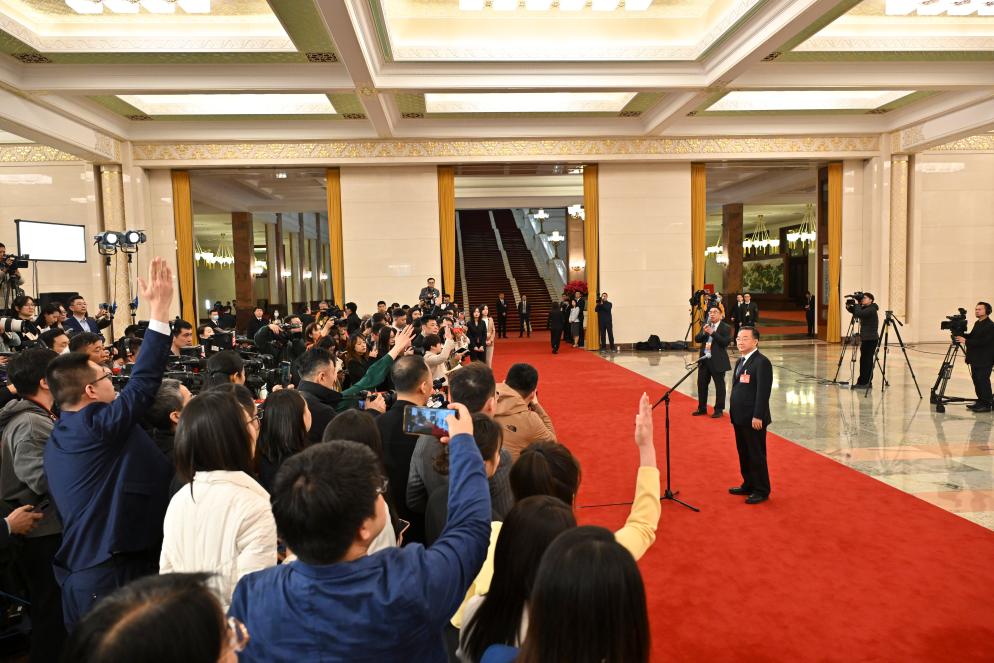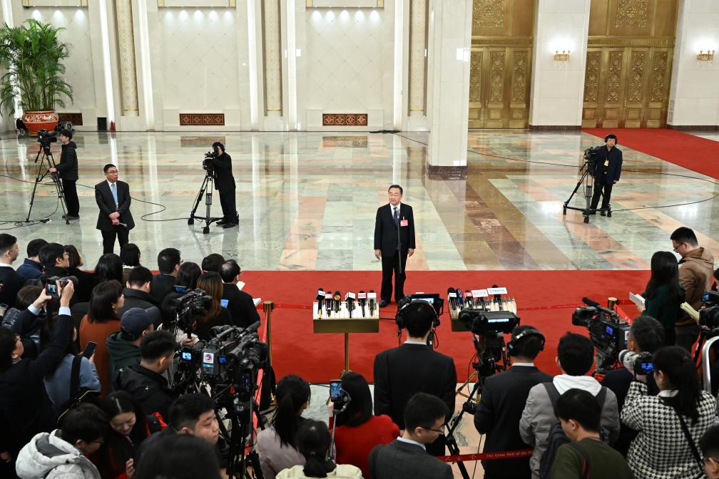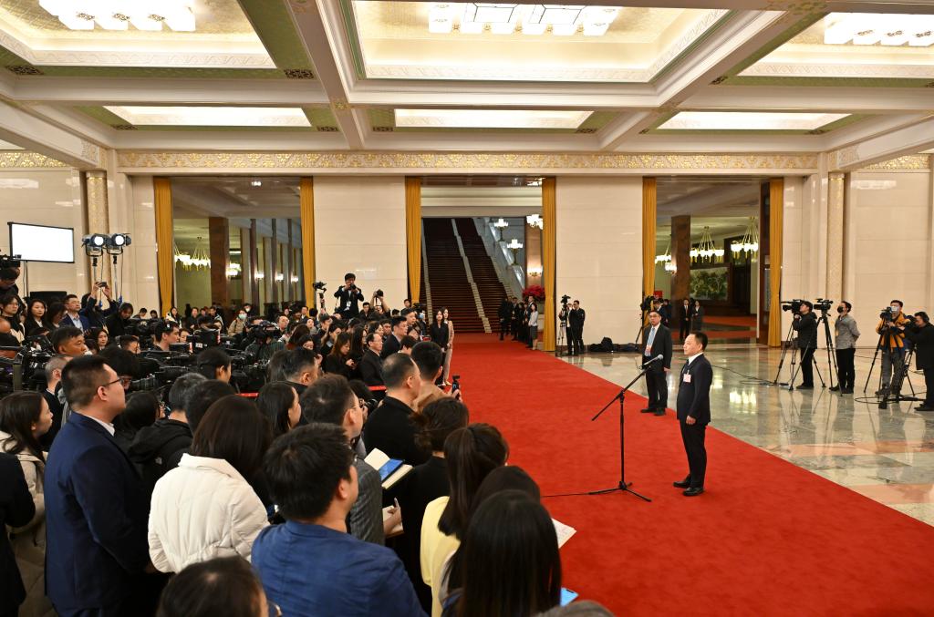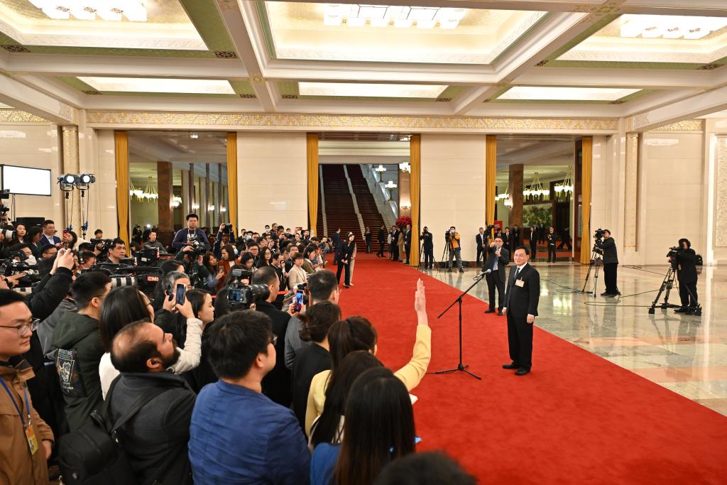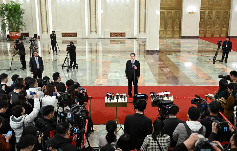 3月5日,第十四届全国人民代表大会第二次会议首场“部长通道”集中采访活动在北京人民大会堂举行。新华社记者 李鑫 摄