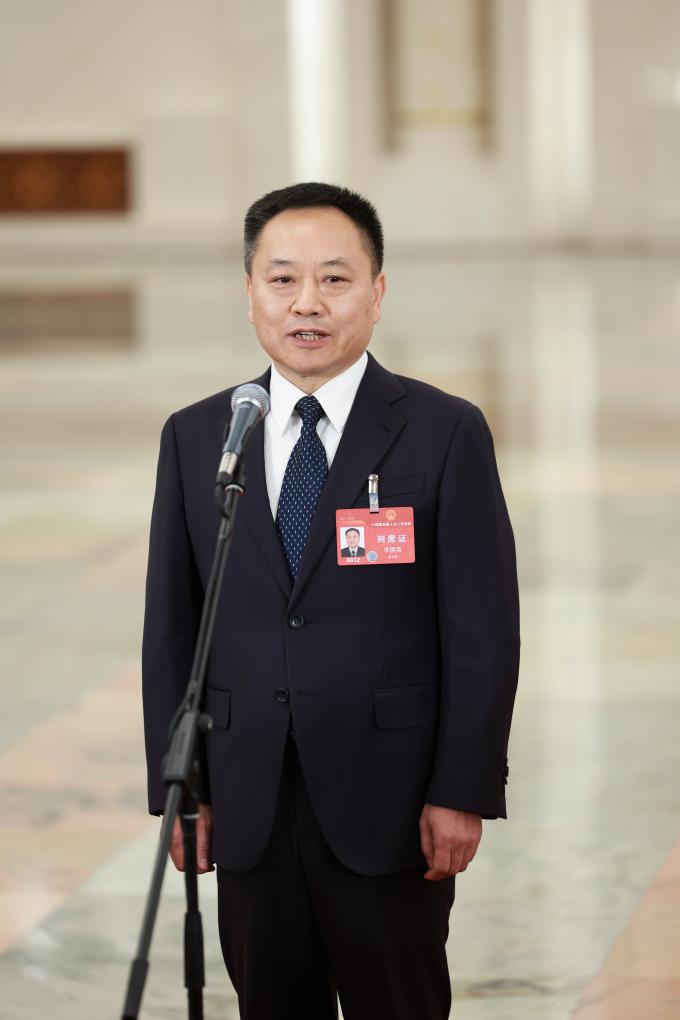 3月5日,第十四届全国人民代表大会第二次会议首场“部长通道”集中采访活动在北京人民大会堂举行。这是水利部部长李国英接受媒体采访。新华社记者 刘续 摄