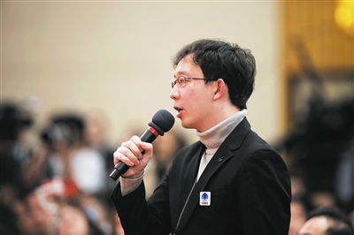 新京报记者罗亦丹在提问。