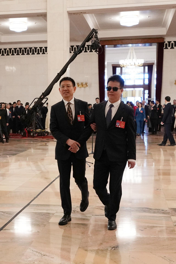“代表通道”结束后,王永澄代表跟记者说:“谢谢你的提问,让我把残疾人兄弟姐妹们的声音带到全国人大会议上,让残疾人的心声得以倾听,让视障人士的心愿得以‘看见’。” (记者邱犇)