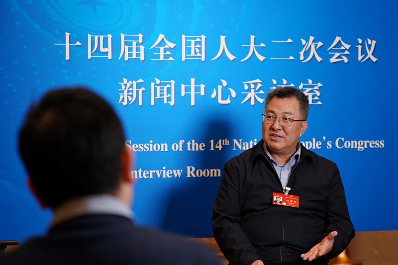 全国人大代表、国家博物馆馆长王春法接受媒体记者采访。 新京报记者 裴剑飞 摄