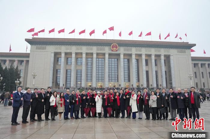 3月5日,十四届全国人大二次会议在北京人民大会堂开幕。图为香港代表团代表合影。中新社记者 杨华峰 摄