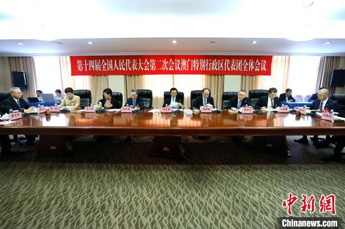 3月7日,出席十四届全国人大二次会议的澳门代表团举行开放团组会议。中新社记者 富田 摄