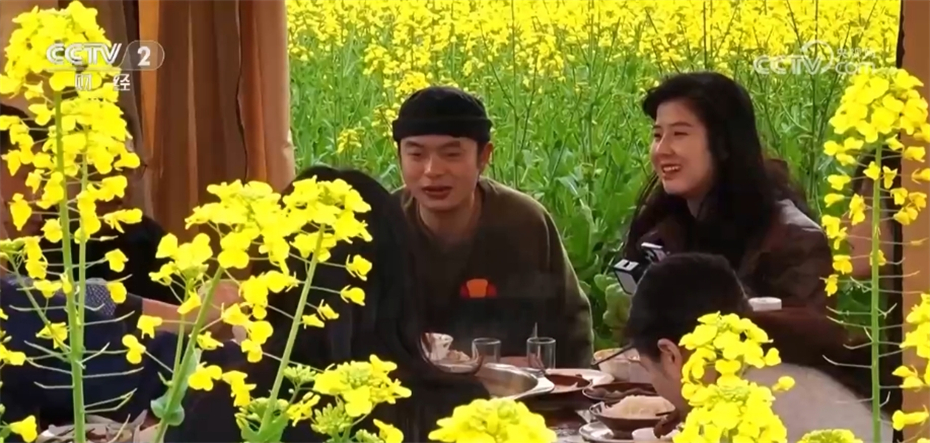 除了花田火锅,在以油菜花田为背景的乡村道路上,各类装满当地特色农产品的摊位依次摆开,游客们迎着花香赶大集,带走春日特有的伴手礼。