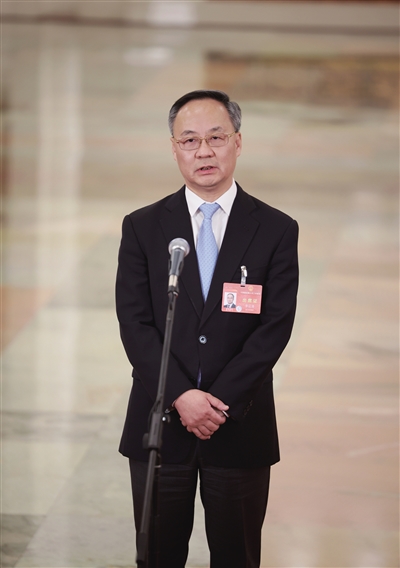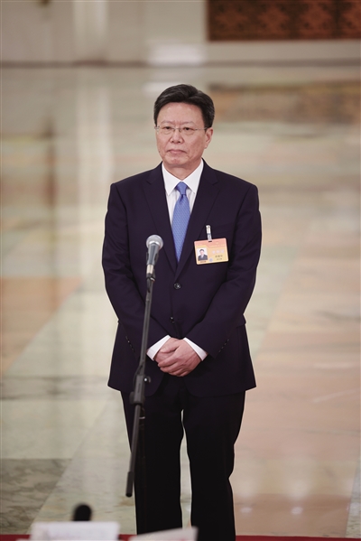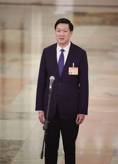 3月11日下午,十四届全国人大二次会议第三场“部长通道”在人民大会堂举行。文化和旅游部部长孙业礼、海关总署署长俞建华、国家金融监督管理总局局长李云泽、国家体育总局局长高志丹、国家知识产权局局长申长雨接受媒体采访。