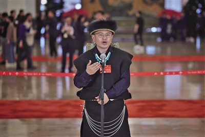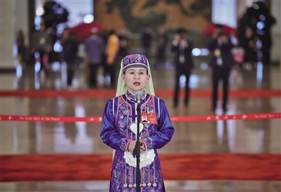 3月11日下午,十四届全国人大二次会议第三场“代表通道”在人民大会堂举行。6位来自教育、医疗、文化、社会服务等领域的全国人大代表走上“代表通道”,回答记者提问。