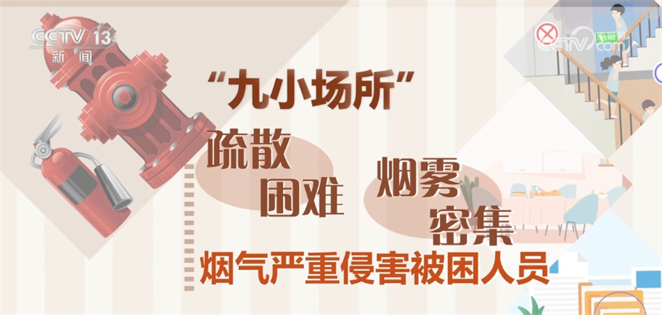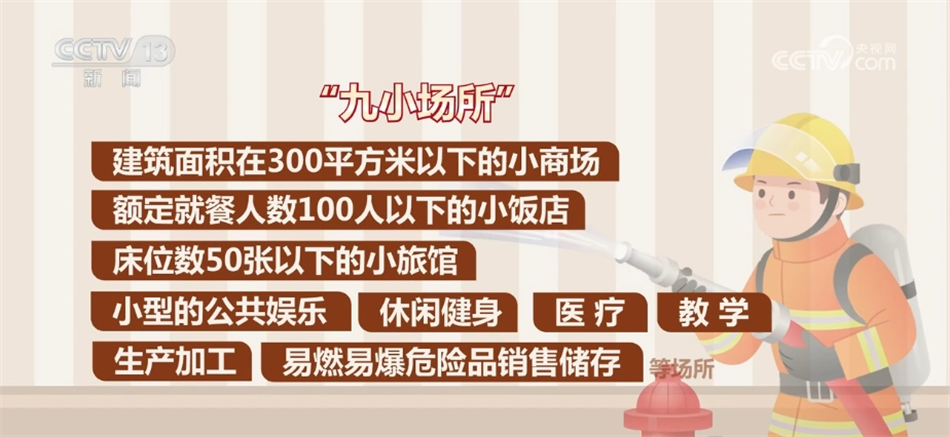 “九小场所”是指建筑面积在300平方米以下的小商场、额定就餐人数100人以下的小饭店、床位数50张以下的小旅馆,以及小型的公共娱乐、休闲健身、医疗、教学、生产加工、易燃易爆危险品销售储存等场所。“九小场所”一旦出现火灾,容易形成大面积燃烧。通常,“九小场所”疏散困难、烟雾密集,烟气严重侵害被困人员。同时,水源缺乏、灭火救援难度大,极易造成人员伤亡。