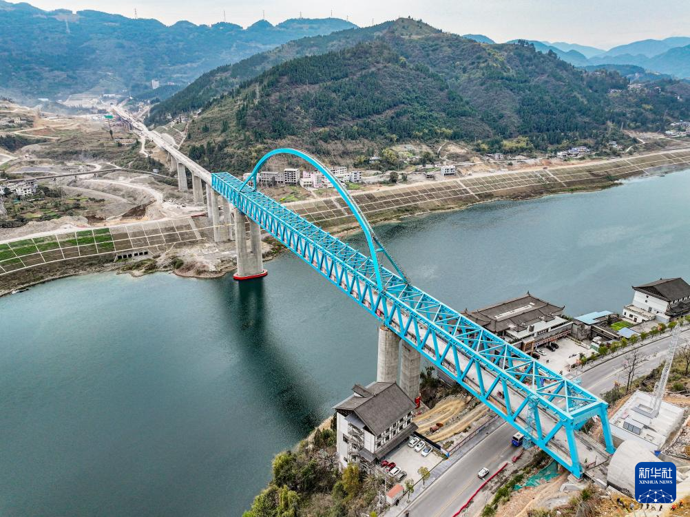 清水坪乌江特大桥位于武陵山区腹地的重庆市彭水苗族土家族自治县境内,是渝湘高铁重庆至黔江段“六隧五桥”之一和全线重难点工程。大桥全长804.6米,主跨240米,一跨过江,为国内首座双Y型单拱肋主拱结构无砟轨道高速铁路桥梁。该项目于2020年开工建设,目前已完成建设进度90%,进入最后收尾阶段。